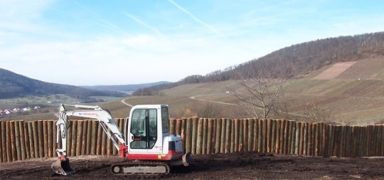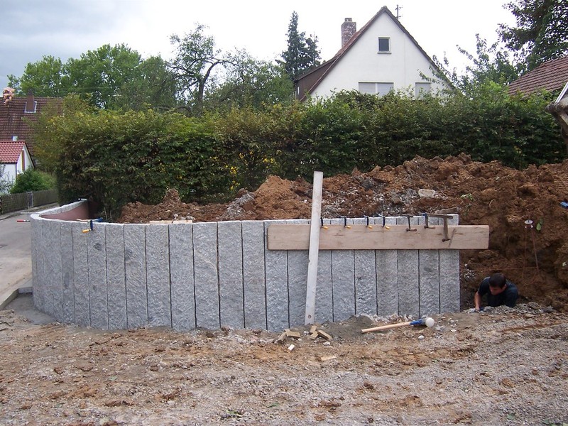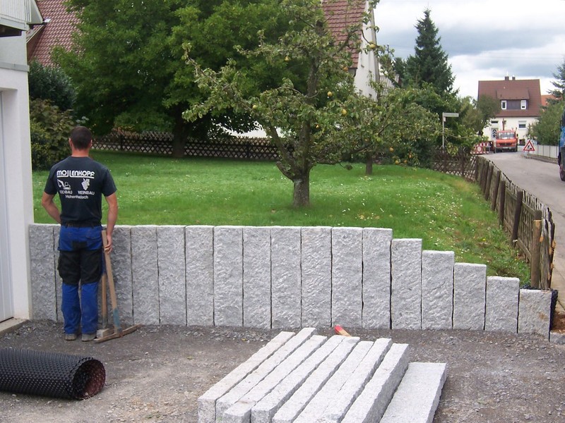 Seit den 1970er Jahren werden Palisaden im Landschaftsbau verwendet. Sie dienen meist dem Abfangen von Böschungen bzw. kleineren Hängen und/oder der Beet- bzw. Wegeeinfassung oder - wenn auch seltener - als freistehende Wand (z. B. Sichtschutz). Im eingebauten Zustand sind solche „Wände“ in der Regel nicht höher als 2–3 m. Wir verwenden meistens Granitpalisaden. Anbei ein kleiner Einblick in unseren bisherigen Palisadenbau.